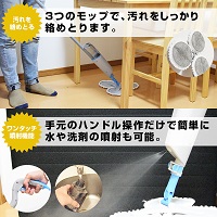 水や洗剤を入れられるタンク(液体ボトル)を搭載。手元のレバーを引くだけでボトル内の液体を前方に向けて噴射できる。乾拭きだけでなく、水拭きも可能となっています。