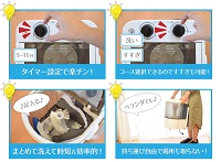 靴を洗濯機にそのまま入れるだけ、洗濯総の中央に付けたブラシが回転して、ゴシゴシ洗いとパワフルな水流で、靴の汚れを落とします。洗うのが面倒で時間がかかっていた子供のうわばきも、この靴洗濯機で時短できてカンタンです。