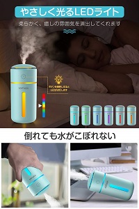 【2020最新版 & 大容量 350ml】USB充電式ワイヤレス卓上加湿器がAmazonで販売中、価格は2,080円です。カラーはブルーとブラックの二色、750mAhバッテリー内蔵され、電源が取れない場所や停電時にも困らない設計です。PCやモバイルバッテリーから給電することも可能です。