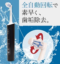 素早く磨いて綺麗な歯を維持したい方にお勧め。歯を両側から挟み込んでブラシが回転するので歯の表と裏を同時に磨けてしまいます。2種類の特殊なブラシで歯も歯ぐきも素早くキレイになります。