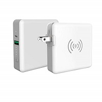 容量5,200mAhのバッテリーを内蔵したモバイルバッテリー。コンセントプラグを搭載しAC充電器として使用可能な他、Qi対応でワイヤレス充電にも対応しています。