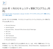 毎月10日頃には提供されるWindows Update(セキュリティアップデート)が、今月は遅いと思っていたら、今日(1/15)になって提供されました。