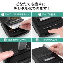 さらにカセットテープの音源をデジタル化し、MP3ファイルに変換してUSBメモリに保存できます。デジタル化した音源はパソコンやスマホでも再生可能。これらをボタンを押すだけの簡単操作で行なえる点も特徴としています。