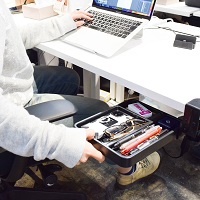 引き出しがいざ欲しいとなると、意外と手段がないもの。テーブルに穴をあける、買い換えるetc… なかなかハードルが高いのが現実です。そこまで大きい収納はいらないけれど… ちょっとしたものを収納できて、手軽にカンタンに取り付けられるようないい収納があれば便利です。