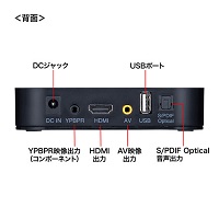 対応メディアは、32GBまでのUSBメモリ、SDカード、SDHCカードで、SDXCカードには非対応。出力端子は、HDMI/コンポーネント/RCAコンポジット/VGAを搭載、さまざまなテレビやディスプレイに対応します。このほかS/PDIF音声出力端子を備え、アンプなどから音声を出力することもできます。
