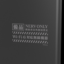 既発売の「WXR-5950AX12」の筐体に、NERVマークや「備品ラベル」をあしらったほか、独自の「デュアルスタックダイポールアンテナ」の先端に斜めストライプ柄をデザインした限定モデルです。WXR-5950AX12は、Wi-Fi 6(IEEE 802.11ax)と10GBASE-Tに対応するWi-Fiルーター。8×8に対応し、最大通信速度は5GHz帯が8ストリーム4803Mbps、2.4GHz帯で4ストリーム1147Mbps。