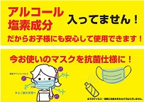 塩素系、アルコール系の成分・防腐剤・界面活性剤は一切使用していない中性水溶液で、食品衛生法もクリアする安全性の高い最先端ナノテクの環境対応型除菌消臭液です。マスクに使用すれば抗菌マスクに。ドアノブやマンションのエレベーターのボタンなど触る場所に使用すれば抗菌効果を発揮します。