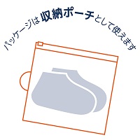 カバーの底面には、細かい凸凹を付けた滑り止め加工が施されている。雨の日の、濡れて滑りやすい路面や側溝のフタの上でも、安心して歩けくことができます。またポリ塩化ビニル製のパッケージは、そのまま防水収納ポーチとして活用でき、突然の雨に備えて持ち運ぶ際や、雨が止んだ後に濡れたシューズカバーを収納するのに便利です。
