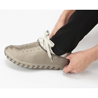 靴にぴったりとフィットするため、ズレが気になったり、歩いているうちに脱げてしまう心配がない。装着方法は、安定した場所に座って履いている靴の上から、靴下を履くようにかぶせるだけ。同社によれば、慣れると片足につき約15秒で装着できるとのこと。