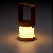 提灯のように伸縮するデザインが特徴のLEDランタン。ライト部天面にあるセンサーを素早く2回触れると弱点灯。さらに1回触れると、明るさが「中→強→弱→中」と明るさが切り換えることができます。ライトのホヤが提灯の蛇腹のように伸縮。使用時にはホヤを引き伸ばし、吊るしたり置いたり、手で持って持ち運べます。