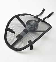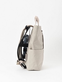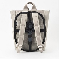 バックパックと背中の間に、市販のハンディファンを取り付けられるメッシュパネル。バックパックやオフィスチェアでの汗ムレを軽減します。