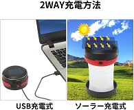 SB充電式&ソーラー充電で、エコで電池不要です。天面にはソーラーパネルが装着され、太陽光からいつでもカンタンに充電できます。点灯モードは、「ハイ」「エコ」「SOS」3段階モードが切り替えます。ハイモードは連続点灯時間約3H、エコモードは連続点灯時間約6H、SOSモードは連続点灯時間約5Hです。