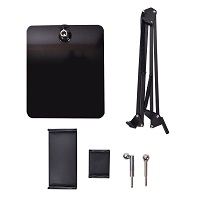 タブレットホルダーとスマートフォンホルダー、2種類のホルダーが付属しています。タブレットホルダーは最大幅約225mm程度まで挟むことができるので、15.6インチモニターを固定することができます。