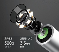 スマートフォンと連動するWi-Fiチップ搭載のカメラ付き耳かき。本体とスマホをWi-Fiに接続し、専用アプリを使って耳の中の様子をリアルタイムに見ながら耳掃除ができます。1,080PのHDカメラセンサー、6つのスマート温度制御LEDライト、6軸重力センサーを搭載。カメラセンサーには直径3.5mmのレンズを採用、外耳道内の細部の映像を300万画素で映し出します。