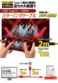 ケーブル長さHDMI-Type-C:2m(テレビ接続用)