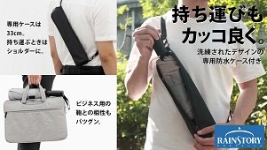 ナノクラスの高密度超撥水素材で加工された傘布面は、軽くひと振りするだけで雨水を振り落とします。紫外線も99.9%をカットするというUPF50+で、日差しが強い日は日傘代わりに使用することもできます。また、傘の柄まですっぽり収まる専用ケースと手ぶらで傘を持ち歩ける専用ストラップが付属します。