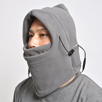 最大約45度のヒーターで、頭~首まで全体を暖めます。バッテリーで動くのでケーブルレスでどこでも使えます。フリース素材で肌触りが気持ちいい。フード部とマスク部にはサイズ調整用のゴムが入っています。ゴムを強く引いて密着度を上げたり、反対にゆるめでラクに使う事もできますので 男女問わず、誰でも使うことができます。