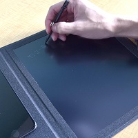 電子メモとしても使えるマウスパッド。付属のペンですぐに文字が書けて、リセットボタンを押せば文字が消せます。PC作業中に急にメモがとりたいという際に重宝します。筆圧を感知するため、細い線や太い線を書くことが可能です。