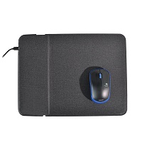 Qi規格のワイヤレス充電にも対応し、スマートフォンを置くと自動的に充電します。マウスパッドは裏面でも表面でも使用可能。光学式、レーザー式のマウスに対応します。