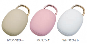 本体表面は柔らかな手触りで、カラビナ付きのためバッグなどに装着して携帯できます。カラーはアイボリー/ピンク/ホワイトの3色展開です。