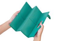 コンビニなどの小売店でレジ袋が有料化し、エコバッグの需要が高まっています。一方で、既存のエコバッグの多くには「うまくたためない」「必要なときに持って行くのを忘れてしまう」といった不満点がありました。Sサイズは折りたたむと紙幣サイズになり、財布に入れることができるため、買い物の際にも忘れず持ち運びできます。Mサイズは、部分的に内包されている芯材によってパタパタと素早く開閉でき、開口部が広いので物の出し入れがスムーズにおこなえます。