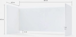 卓上サイズの防音パーティション。組み立て式で、3枚の板をマグネットでコの字型に接着して使用します。板は吸音材「ホワイトキューオン」で作られていて、密度の高いポリエステルの繊維によって音を吸収し、自らが聞こえる音と周りへ聞こえる音を軽減する仕組み。