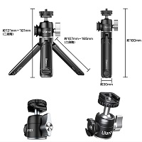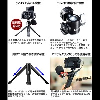 脚部は収納した時にぴったりとつくように設計され、ハンドグリップとしての使用も可能。収納時の長さは約180mm、三脚使用時の高さが約131~161mm(いずれも雲台含む)。脚部は2段式で、脚長約107~165mmの伸縮に対応。重量は約178g。耐荷重量は約2kg。