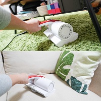 カーペット掃除といえばローラー型の粘着テープですが、カーペットの上を転がしているとすぐいっぱいになって何度も剥がさなければならず面倒。「電動カーペットクリーナー」なら、毎分7,500回ものたたき機能で細かい粉塵やゴミをあぶり出し、10,000Paもの強力な吸引力で目に見えにくいゴミもすっきり綺麗にします。