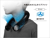 ペルチェ素子による冷却/温熱部が、直接首後ろに触れるため、ダイレクトに冷やしたり温めたりできます。温/冷の切り替えは約50秒で行なえ、一年を通して使うことができます。