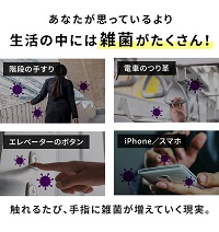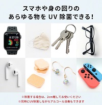 さらにUV除菌付で、スマホや鍵と言った毎日使うモノも除菌することができます。電源ボタンを長押しして、除菌したいモノに2cm以内に近づけるだけ。およそ120秒で、99.9%の雑菌を除去できます。