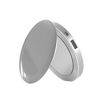 女性の必需品である手鏡にモバイルバッテリー機能を搭載した実用性バツグンの便利アイテム。鏡は等倍と3倍拡大の2種類で、拡大鏡部分にLEDライトが搭載されています。バッテリー容量は3000mAh。本体寸法は91mm×17mmで重さは約130g。