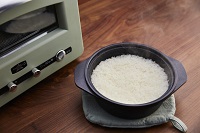 付属の炊飯釜を使用して最大2合までの炊飯が可能。専用の炊飯プログラムを搭載し、お米一粒一粒にハリがあり、甘みのある炊き上がりになるとのこと。白米以外にも炊き込みごはんやピラフも炊けます。
