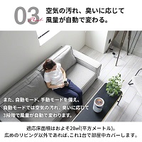 適応床面積はおよそ20㎡。広めのリビングでなければ、これ一台で部屋中をカバーします。また、空気の汚れ臭いに応じて風量が自動で変わります。