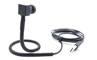 パソコンのディスプレイ中心部に1.5cm角の小型カメラを配置し、Web会議でも「相手の目を見て話す」を実現するというWebカメラ。ディスプレイ背面にケーブルホルダーを取り付け、30cmのフレキシブルコードでカメラの位置を決めるようになっています。
