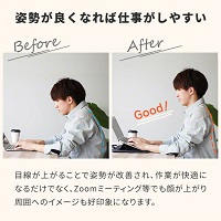 スタンドは高さ約6cmで、画面を見る目線が上がることで自然と背筋が伸びて正しい姿勢となり、Zoom会議などでも印象よく映ることが期待できるとのこと。
