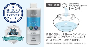 本体にはLEDライトを搭載。運転モードは「HI+LED/HI/SLEEP」の3段階に切り替えることができます。付属の「SHIZUKUナノプラチナウォーター」をタンクの水に適量添加することで清浄機能がアップ。消臭/抗菌/抗ウイルス効果を発揮するとのこと。