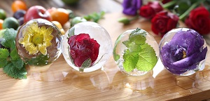 例えば、丸氷の中に花を入れて凍らせると中の花をはっきりと確認できます。時間をかけてゆっくり凍結させるほど、氷の透明度はあがります。