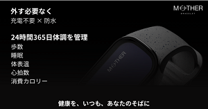 全てのデータはスマートフォンにインストールした”MOTHER App “から確認できます。常時装着する事で計測条件は常に一定。データが蓄積されるほど、統計的に健康状態を把握することができ、信頼性がアップしていきます。