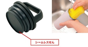 容器部分は食器用台所スポンジでも洗いやすい広口形状で、丸洗い可能。さらに、ふた部分には「せん」と「パッキン」が一体になった同社独自の「シームレスせん」を採用し、「パッキンのつけ外し」不要でお手入れできるようになりました。