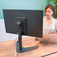 スタンドのアジャスタを緩めれば、高さを無段階調整することができます。自身の目線の高さに固定できることで、目の疲れの軽減や作業効率の上昇にも繋がります。