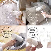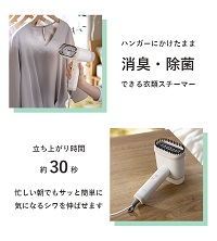 平均約15g/分のスチームを噴射する衣類スチーマー。衣類をハンガーにかけたままシワ伸ばしができるため、アイロンがけしづらい薄手のシャツや毎日洗えないジャケットやコートのケアに最適。またマスクや帽子、枕やソファなどの除菌・消臭にも使用できます。