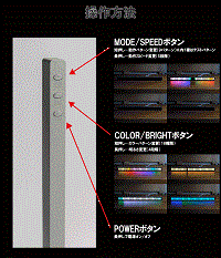 電源を入れると背面マイクが音を感知して音楽や周囲の音に合わせてLEDが上下します。 多彩な動作パターンを備え、背面のボタンで色や動きを変化させて楽しむことが出来ます。