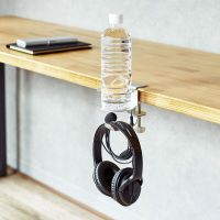 クランプ式でデスク下にしっかり取り付けることができ、天板厚み約50mmまでのデスクに対応します。直径約70mmまでのドリンクを置くことができ、ハンガー部にはプラグやコードを引っ掛けることができるフックが付いています。