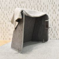 温度調整は45℃/55℃/60℃の3段階で切り替え可能。面ファスナーで天面に装着できるブランケットも付属し、熱が逃げるのを抑えられる。使わないときは、折りたたんで収納もできます。