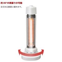 2015年から販売するロングセラーモデルに、首振り機能を追加しました。電源を入れるとすぐに発熱する速暖ハロゲンヒーターを使用、転倒すると電源が切れる安全設計。ベースの大きさは直径約18.5cmで手のひら程度のスペースに設置でき、高さはイスに座った時に膝下を集中的に暖められる約52cmとなっています。