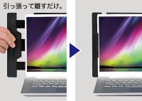 ノートPCに取り付ける一体型のサブモニターなので、場所をとらずに作業効率をアップできます。スライドフレームを引っ張って手を離すだけで簡単に取り付け・取り外しができます。