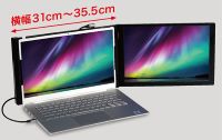 スライドフレームの調整で、横幅31cm~35.5cmのモニターに取り付けできます。また、コンパクトに折りたたんで持ち運ぶことができます。