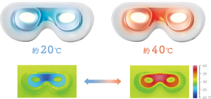 プログラムは「スッキリ(温/冷)」「ひんやり(約20℃)」「ぬくぬく(約40℃)」。約5分の自動オフタイマーを搭載。アイホール部は目元にフィットする3D形状。まつエクを付けていても折れにくいアイホール設計。