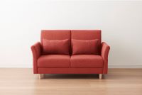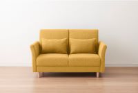 布張りの2人掛けソファ。本体内部に渦巻き型ヒーター熱線を搭載し、座面と背もたれ腰部分から体を温めます。