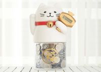 招き猫が貯まった硬貨の金額を教えてくれる貯金箱